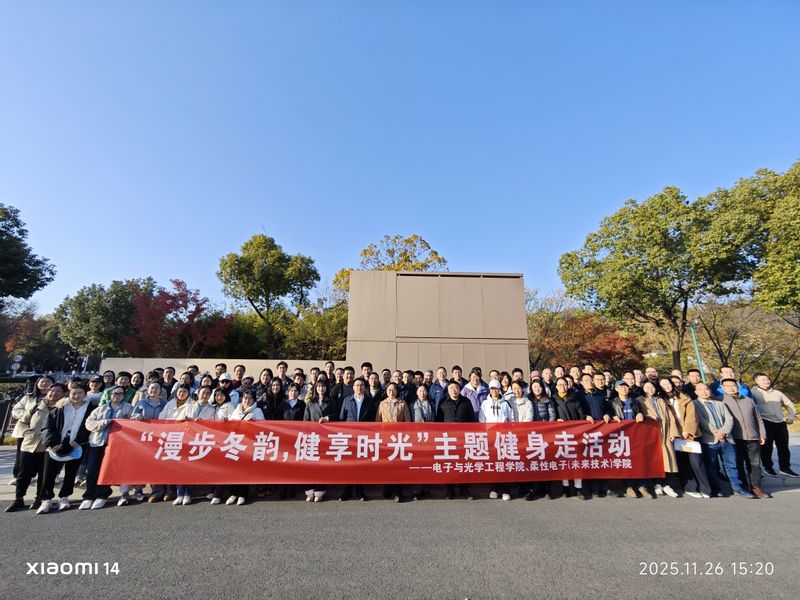 為迎接學院黨代會勝利召開,讓全體教職工在自然中放松身心、在運動中凝聚力量,11月26日下午,電子與光學工程學院、柔性電子(未來技術)學院工會精心策劃“漫步冬韻,健享時光”主題健身走活動,組織全院教師走進羊山公園,共赴一場冬日美景與健康活力的雙向之約。下午三點,參與活動的教師們齊聚公園入口廣場,臉上洋溢著期待與喜悅。學院黨委書記黃麗亞致辭,她表示,此次健身走活動既是響應“全民健身”號召、關愛教職工身心健康的暖心舉措,也是學院以團結奮進風貌迎接黨代會的生動實踐。“希望大家在漫步中欣賞冬景、在同行中增進情誼,把運動帶來的活力與激情,轉化為教書育人、干事創業的強大動力,共同為學院高質量發展蓄力賦能。”致辭結束后,教師們邁著矯健的步伐有序啟程,沿著蜿蜒的環湖步道展開了一場與冬日的親密邂逅。活動結束后,教師們在公園入口處集體合影。此次健身走活動全程約5公里,路程雖不算長,卻讓老師們在繁忙的工作之余,走出了校園、走進了自然,既鍛煉了身體、舒緩了壓力,更增進了彼此間的溝通與情誼。電子與光學工程學院、柔性電子(未來技術)學院工會未來將繼續聚焦教職工需求,秉持“服務教職工、凝聚向心力”的宗旨,組織更多形式